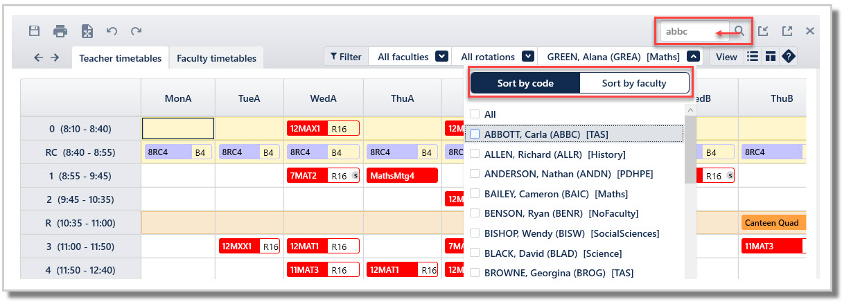 View a single teacher’s timetable: