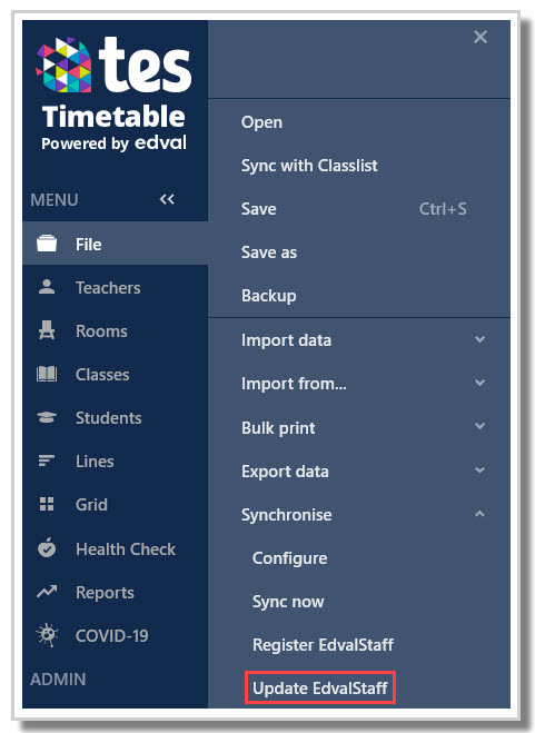 If schools want to use the Tes timetable for the first time, they would need to download the application from our site, or sometimes there may be some issues that stop you from being able to update your E10 / Edval Staff applications via the applications themselves. In this instance, you can download the latest version from the software icons below and replace them with the outdated applications.