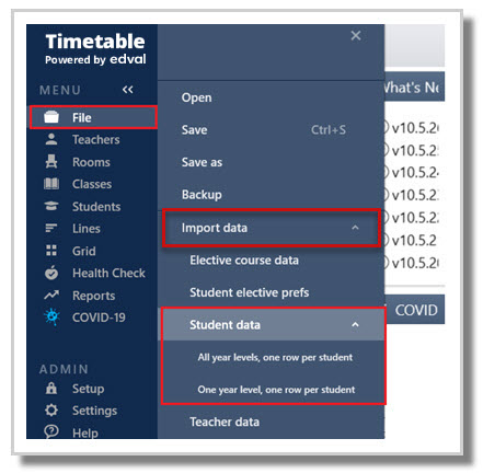 File > Import data > Student data > One year level, one row per student (where the spreadsheet contains a single year level only)