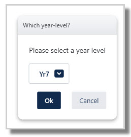 Where 'One year level' is chosen, a prompt will ask which year level the data should be imported to: