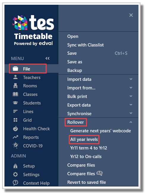 - Go to File > Rollover > All Year Levels.