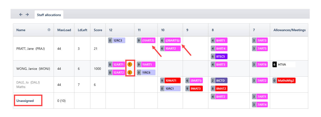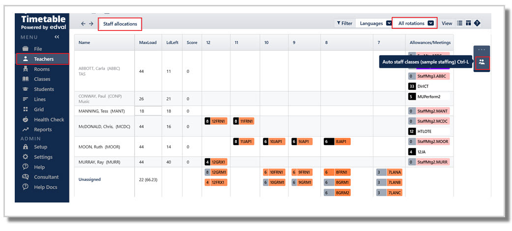 - Make manual changes in Teachers > Staff allocations to better suit teacher capabilities.