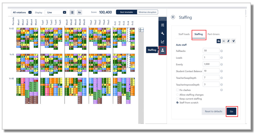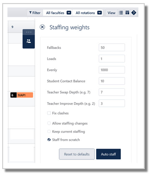 Allow staffing changes: Auto staffs, and allows any assigned classes to be reassigned to other teachers