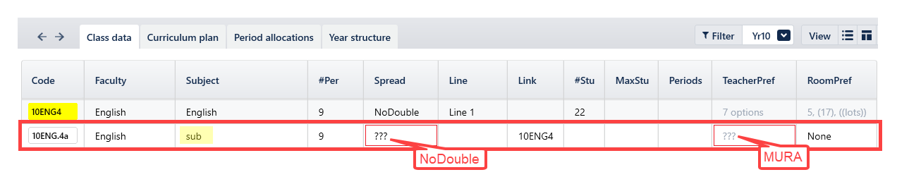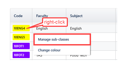 - Open up the Sub-classes feature for 10ENG4 in Classes > Class data (F6)