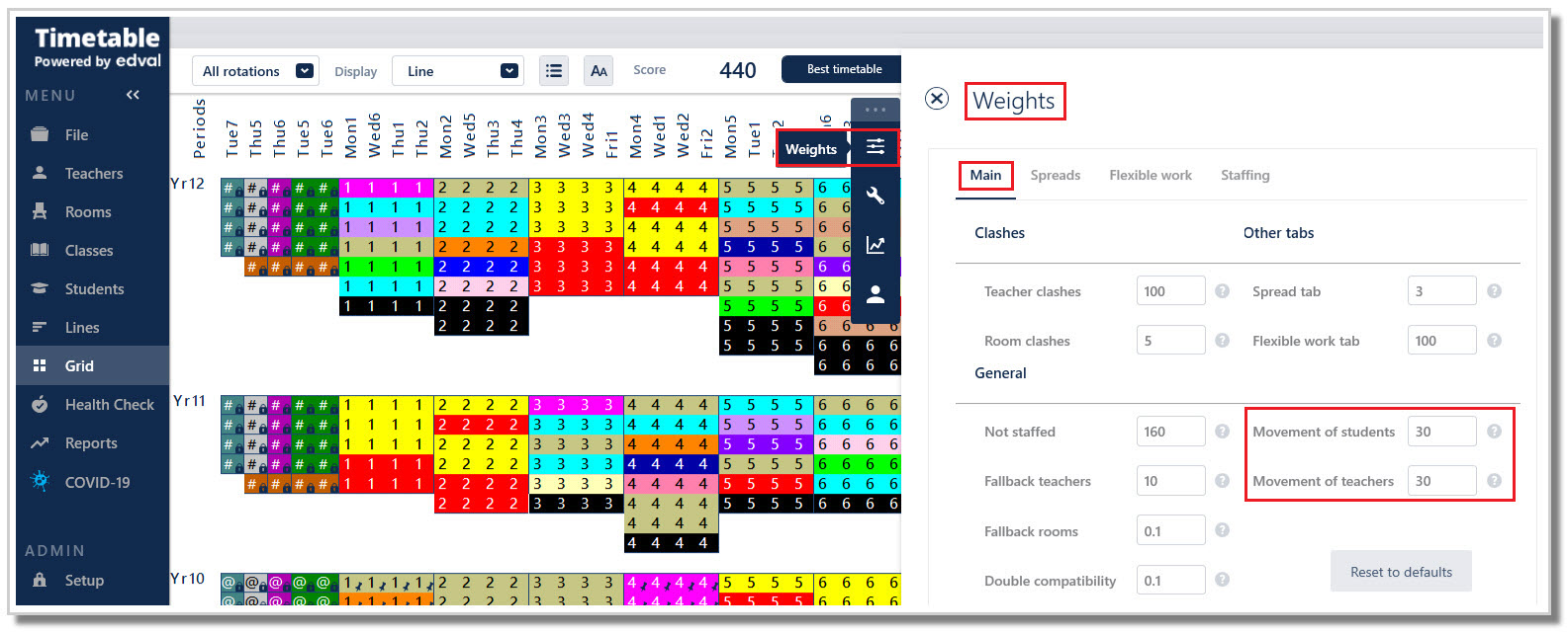 which encourages ease of movement for students and teachers when a penalty is set for students / teachers having to move across campuses or room areas in consecutive periods.