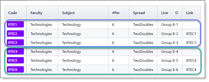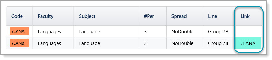 In its basic form, the Link column on the Classes> Class Data screen is used to ensure that two or more classes run at the same time. These classes may be in the same or different year levels.