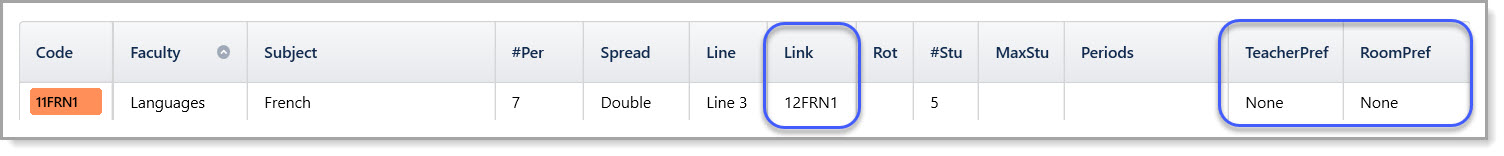 Link the other classes to this class and set the TeacherPref and RoomPref of each linker to ‘None’.