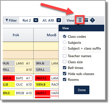 - Orange number or orange 'S': An off-timetable lesson that has clashes involving 1 or more individual students. More than 9 will display as 'S'.