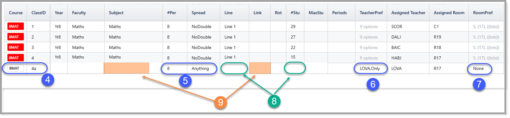 - Select the class that requires an extra teacher. In screenshot below this is 8MAT4