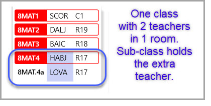 This article covers how to assign additional rooms or teachers to a class through the use of sub-classes.