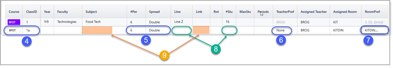 - Select the class that requires an extra room. In screenshot below this was 9FOT1