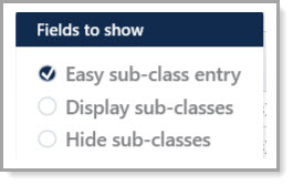 The simplest way to set up sub-classes is to use the Easy sub-class entry feature which is selected from View in Class data.