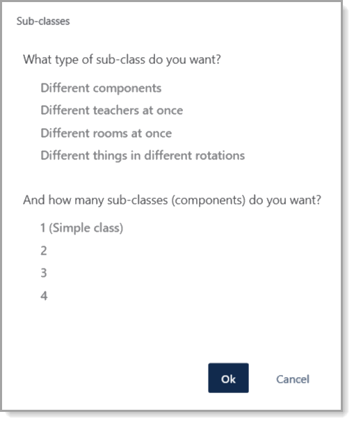 - Select the type of sub-class and the total number of classes/sub-classes required.