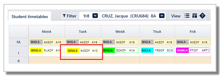 A student attends a Support English class in place of some of their regular classes (or an extension, co-curricular lesson etc). We can allow both classes to show on their timetable, or we can make the Support English class (only) show.