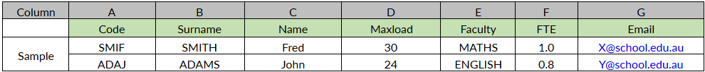 The use of this format will greatly assist in the efficient use of the software regarding the management of teacher and room resources.
