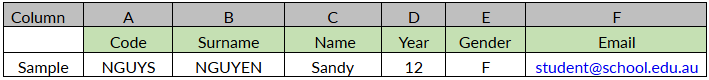 SchoolEdge | Various | In SchoolEdge, go to File > Export > To Excel, tick all of the boxes and send the resulting Excel Workbook. Further instructions can be found here. |