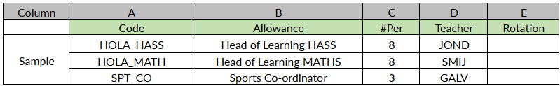 - Staff allowances (HOD Maths, DP, Sport, etc)