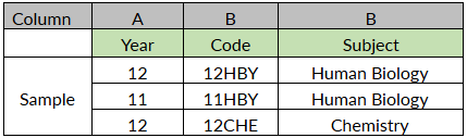 12ENG.1where 12 (year level) ENG (subject code) 1 (class identifier)