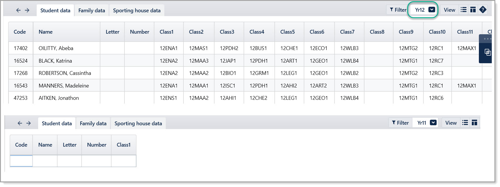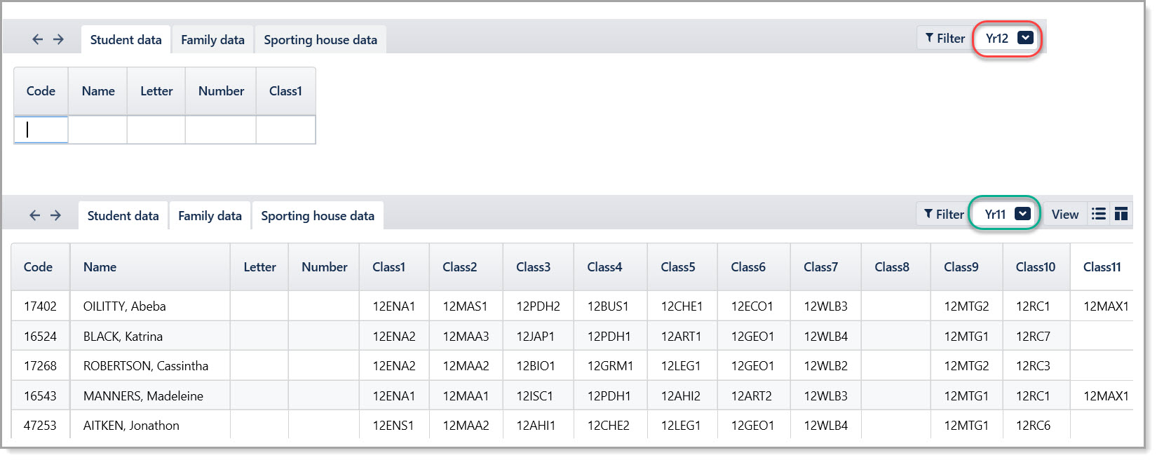 - Year 12 classes can be removed from the grid. Year 11 classes can be 'graduated' into Year 12, or remain in Year 11.