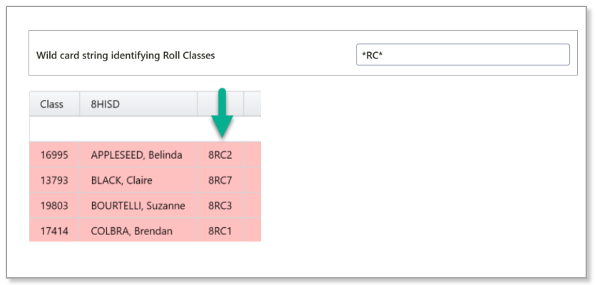 If a ‘wildcard string identifying Roll Classes’ is entered in Setup > School info, an additional column displaying each student’s roll call class will be displayed in the class list table.