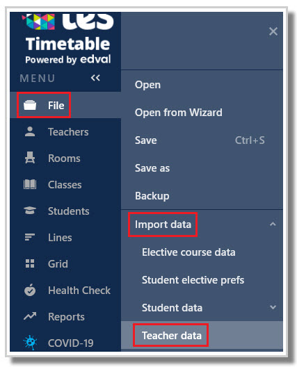 It is possible to import teacher data directly into an E10 .etz file from a spreadsheet. Formats supported include .csv or Excel .xls .xlsx formats.