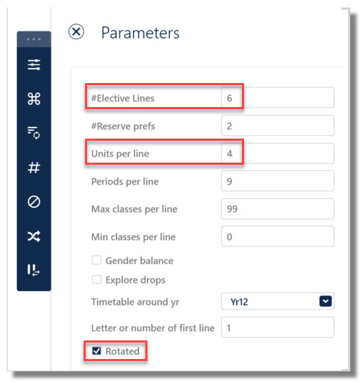- #Elective lines: In the above image, Year 7, would need 3/6 entered, as the lines are to run only on 3 of the 6 lines