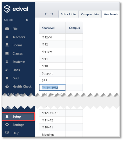 1. Create a new year level to hold the VM classes (Setup > Year levels).
