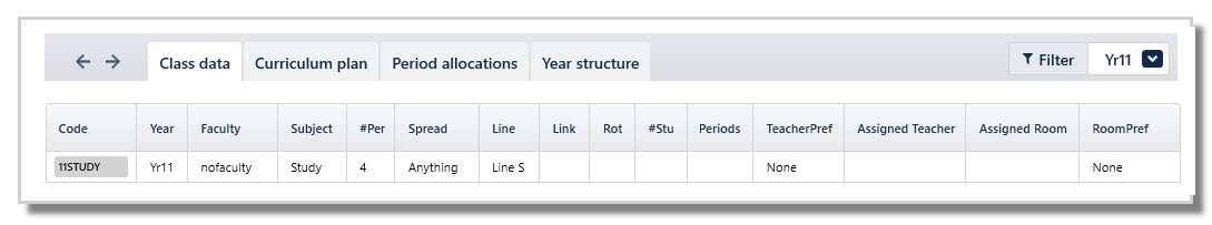 The totals will then add up. Instead of seeing blank periods on the Year 11 timetable, we will see the Study filler classes.