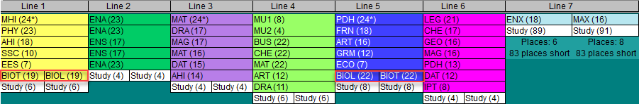 Generate lines as usual. In the View Lines screen, you will see the 2 Biology classes are not shown, but the two Biology sub-component classes are instead.