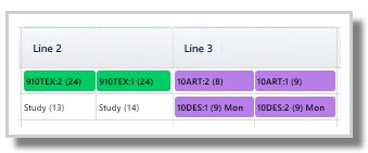 The Line results below show that the 10ART:1 class is in the same line as the 10ART:2 class (Line 3), and that they are horizontal, meaning 10ART:2 is in Rotation 1 and 10ART:1 is in Rotation 2. (the algorithm does not concern itself with the :1 and :2 being in any particular rotation, so long as it has placed each of the classes horizontally then it's work is done.)