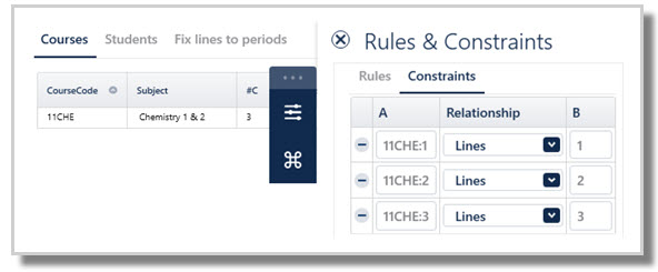 Example: The school is running three 11CHE classes, and they have very specific reasons for needing to enforce that one class of each runs each on Lines 1, 2 and 3. As there are multiple classes of the 11CHE course running, the syntax :1 :2 and :3 must be used.