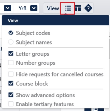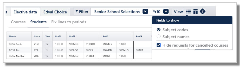 Hide requests for cancelled courses: Cancelled courses are highlighted in a cyan colour, but sometimes we want to remove the cancelled courses from view. When courses are cancelled, Edval will try to place the student into the next course on their preference list to give them a full program (units).