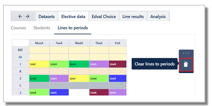 The Lines to periods feature is effectively stipulating the timetable of classes for a dataset even before generating lines.