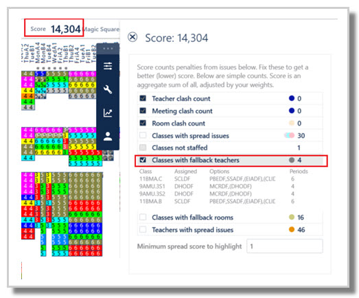 - Classes > Spreads (There is a balance between getting a clash free timetable and having the classes receive the spread they wanted.)