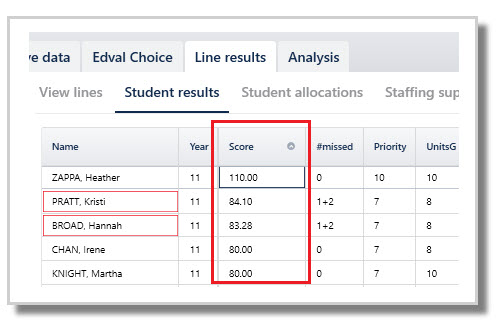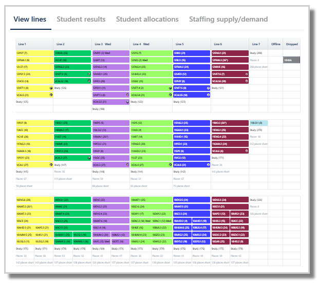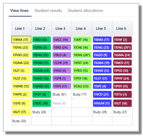 Once the 'Generate lines' action has been performed, it is time to view the results. The algorithm has attempted to find the best possible solution to meet student choice, school resources and the file parameters.