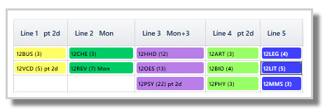 Example lines of a single year dataset, timetabled around another year (Year 10 around Year 12):