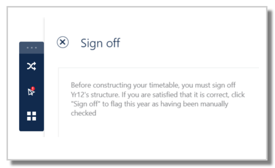 This can also be done in 'Classes > Year Structure'. Click on the arrow in the blue tab on the right hand side of the screen and select > Sign Off'.