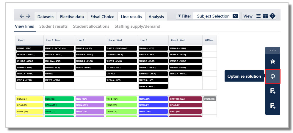 Lines > Lines results > View lines > Action bar: Optimise solution