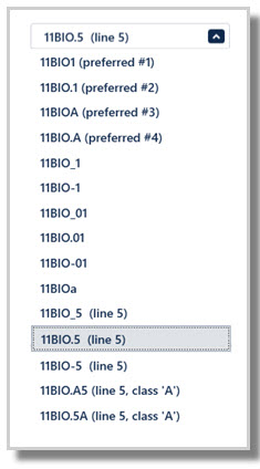 A range of default class code options will be given to choose from. If the school wishes to use a different coding format, the user can select the closest format, then manually adjust each code in Classes > Class data.