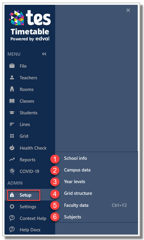 This article will describe the settings in ADMIN to help you setup your school's information relating to year levels, grid structure, faculty data and subjects.