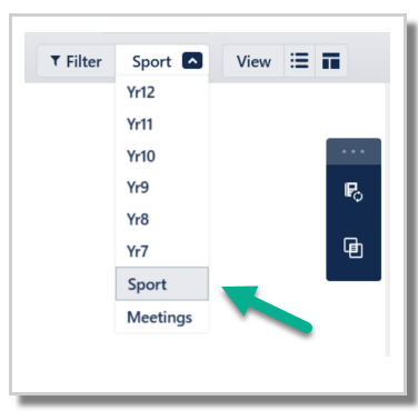 The year level can be selected from many different screens in E10 by navigating to the Filter menu on the top right of the screen and selecting the desired year level from the drop-down.