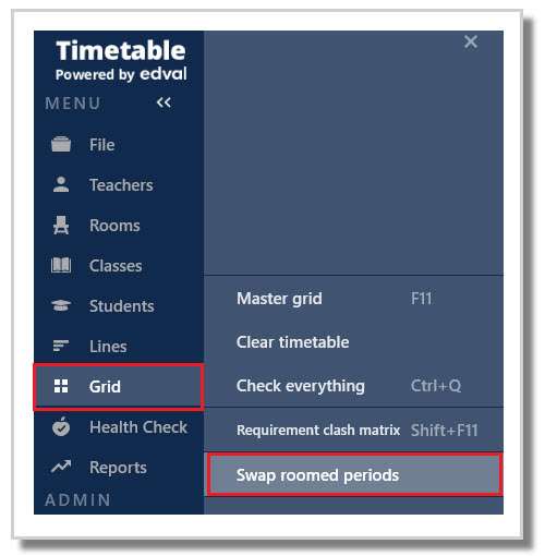 Navigate to Grid > Swap roomed periods