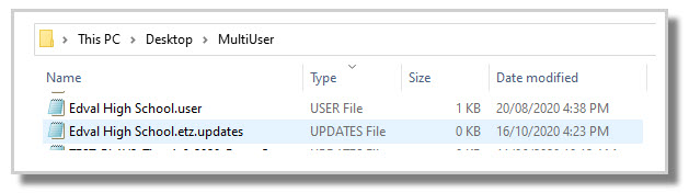 Changes are saved into an 'updates' file located in the 'MultiUser' folder that Edval creates in the same location that the .etz file is saved. They will sit here until the Edval .etz file is open and saved.