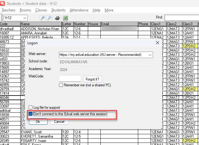 - If you do not tick the 'Remember me (not a shared PC)' checkbox, the program will prompt you for the relevant year's WebCode each time you try to make a change.