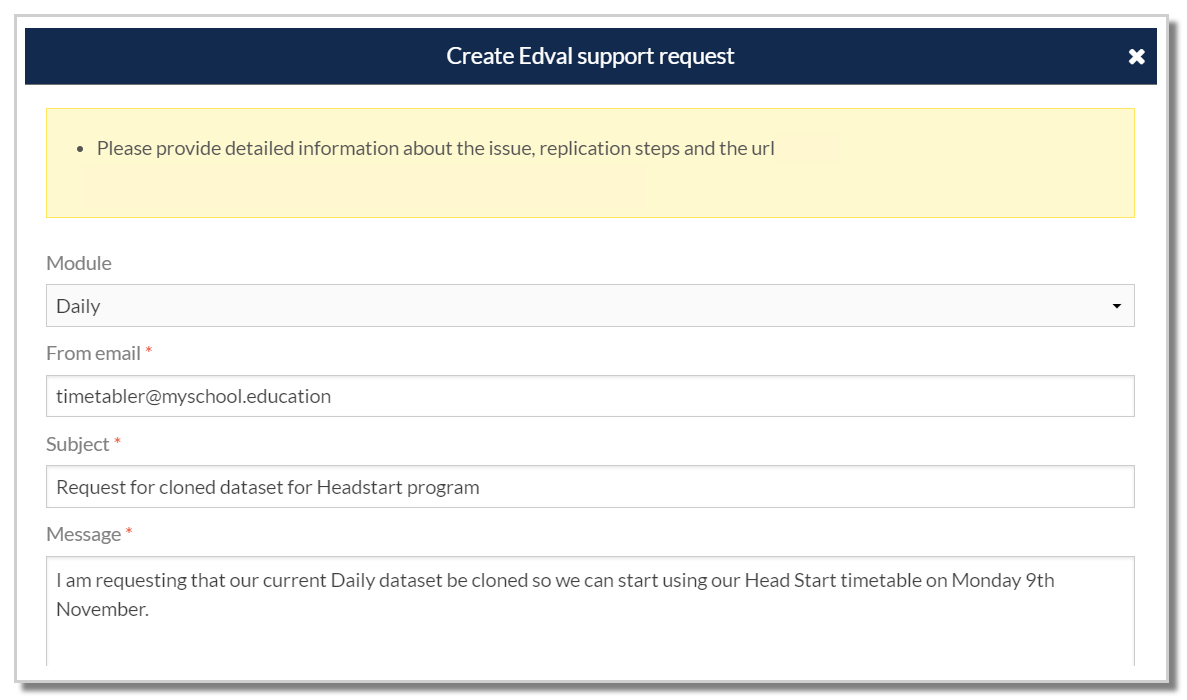 If a school wishes to use a cloned dataset, a request should be sent via Get Help! within Daily with subject of  'Request for a cloned Daily dataset for Headstart" or similar.