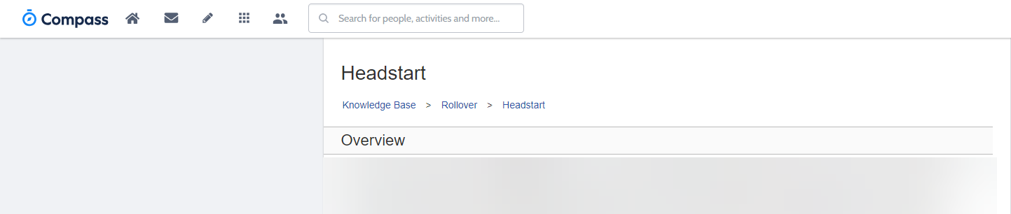 Go to Compass knowledge Base->Rollover->Headstart (provided by Compass).