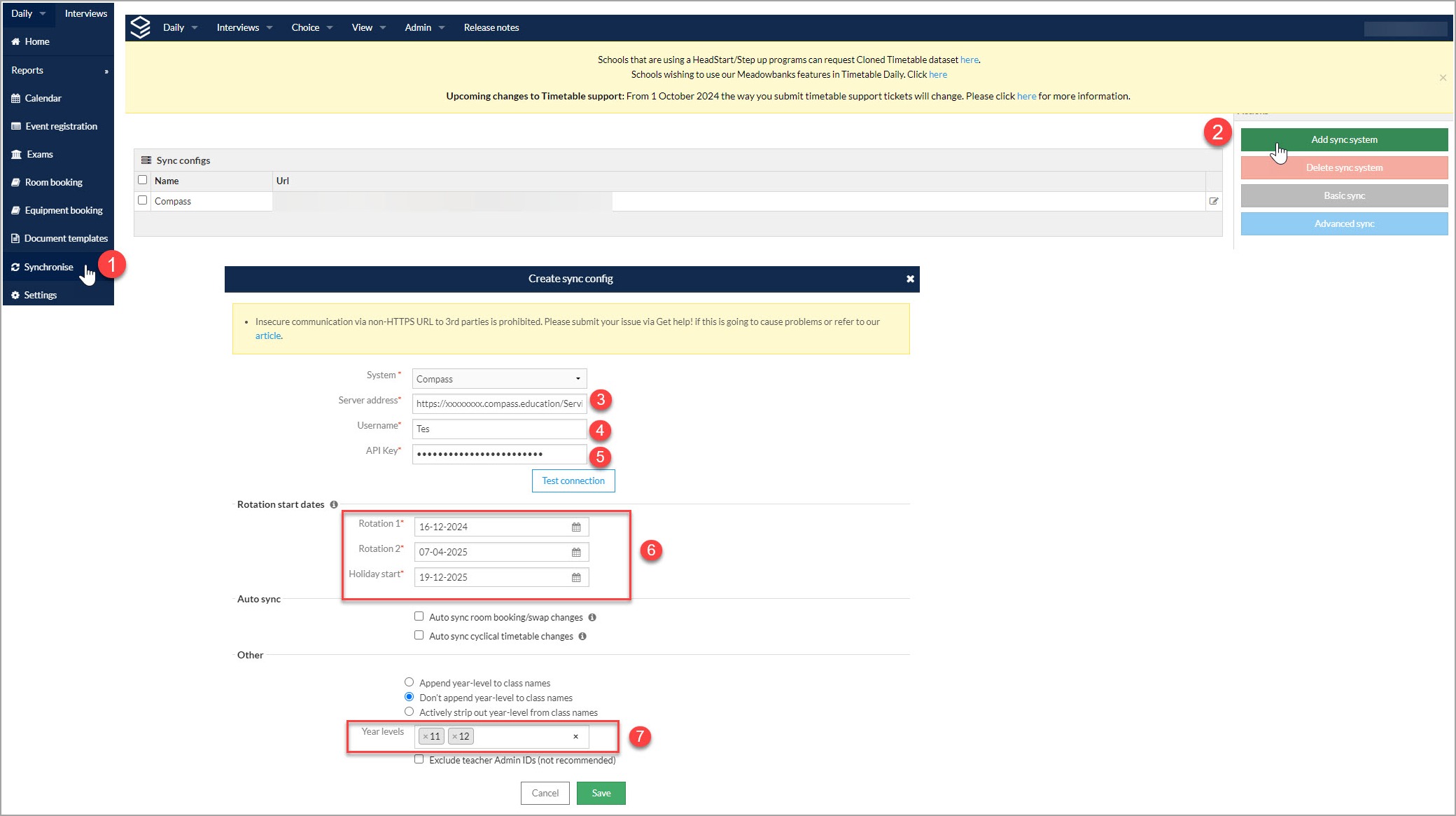 IMPORTANT: For schools who integrate with Compass, please ensure all 'current year' classes in Compass are cancelled in Compass itself  (for year levels involved in Head Start) and term dates are matching with .etz timetable file as well as with Daily rotation start dates.
