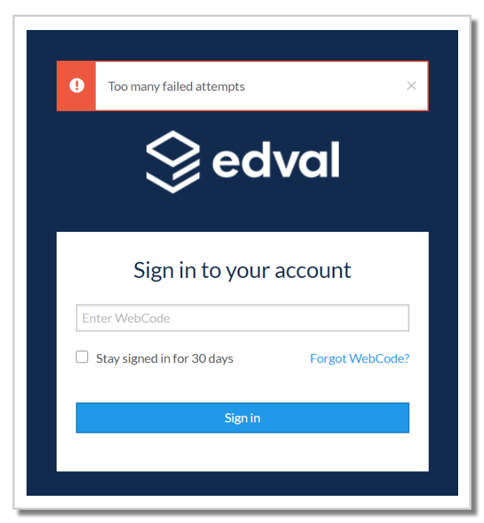 If you enter an invalid WebCode too many times, your access will be blocked for a short period to mitigate the risk of malicious attacks.