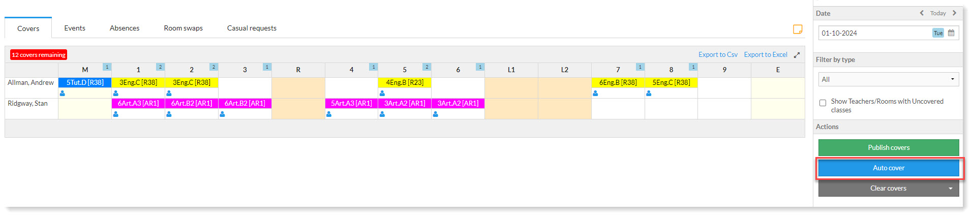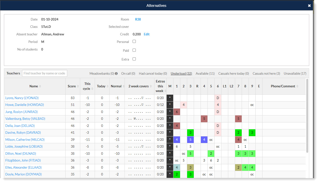 On any day where the part-time teacher is marked as ‘Unavailable’ in the timetable etz file, they will appear under the ‘Casuals not here today’ tab in the Alternatives panel and will be given a ‘relief’ type cover for any classes to which they are assigned that day.
