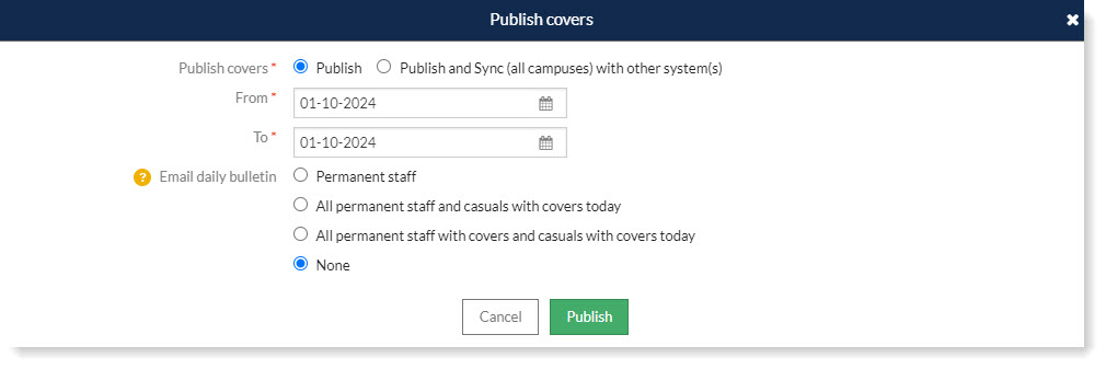 Note - Publish covers can only be executed once. In order to publish again a change needs to be made to the covers.